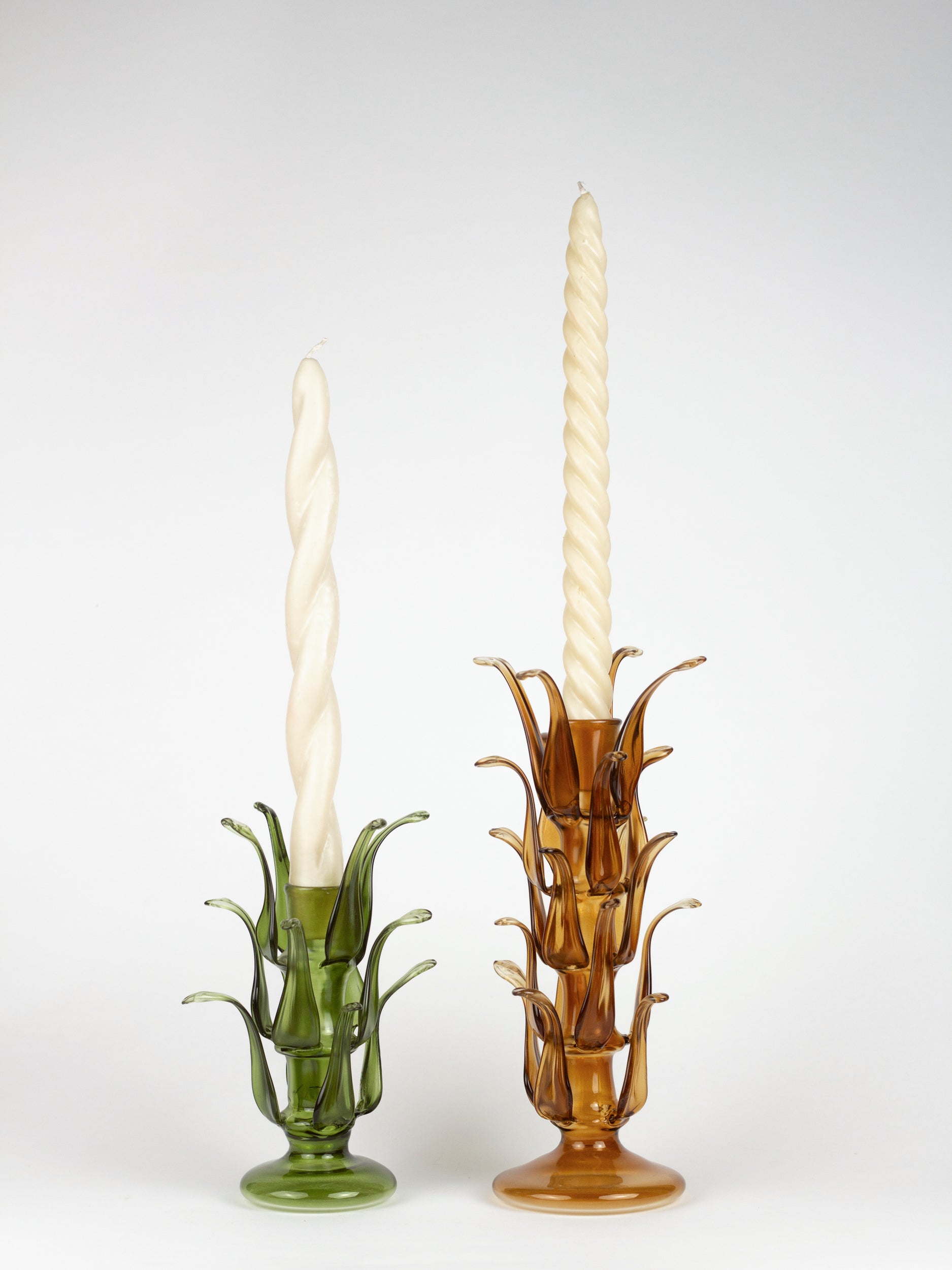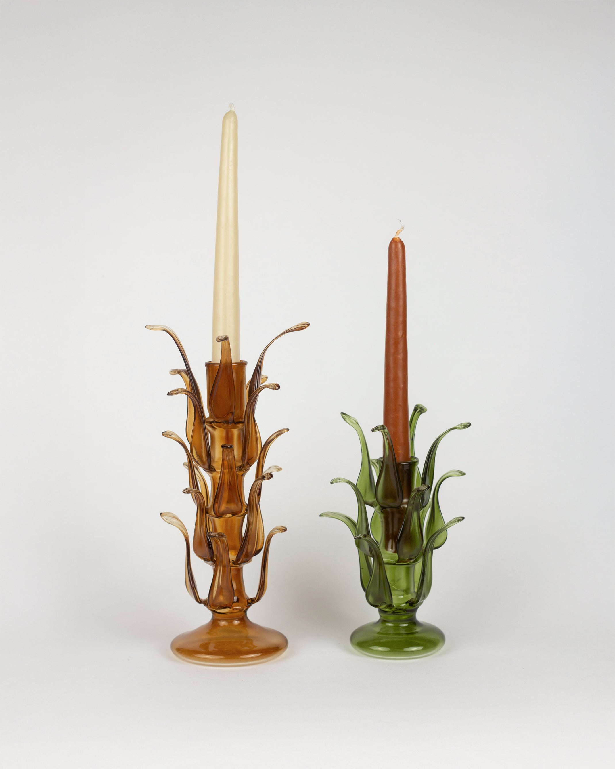 Celebrate the elegance of Cairo’s iconic palm trees with this duo of glass candle holders. The small and large holders together create a layered, nature-inspired display, casting a warm, serene glow. Perfect as a centerpiece, on a shelf, or anywhere you want a touch of the Nile’s greenery.Candle not included.