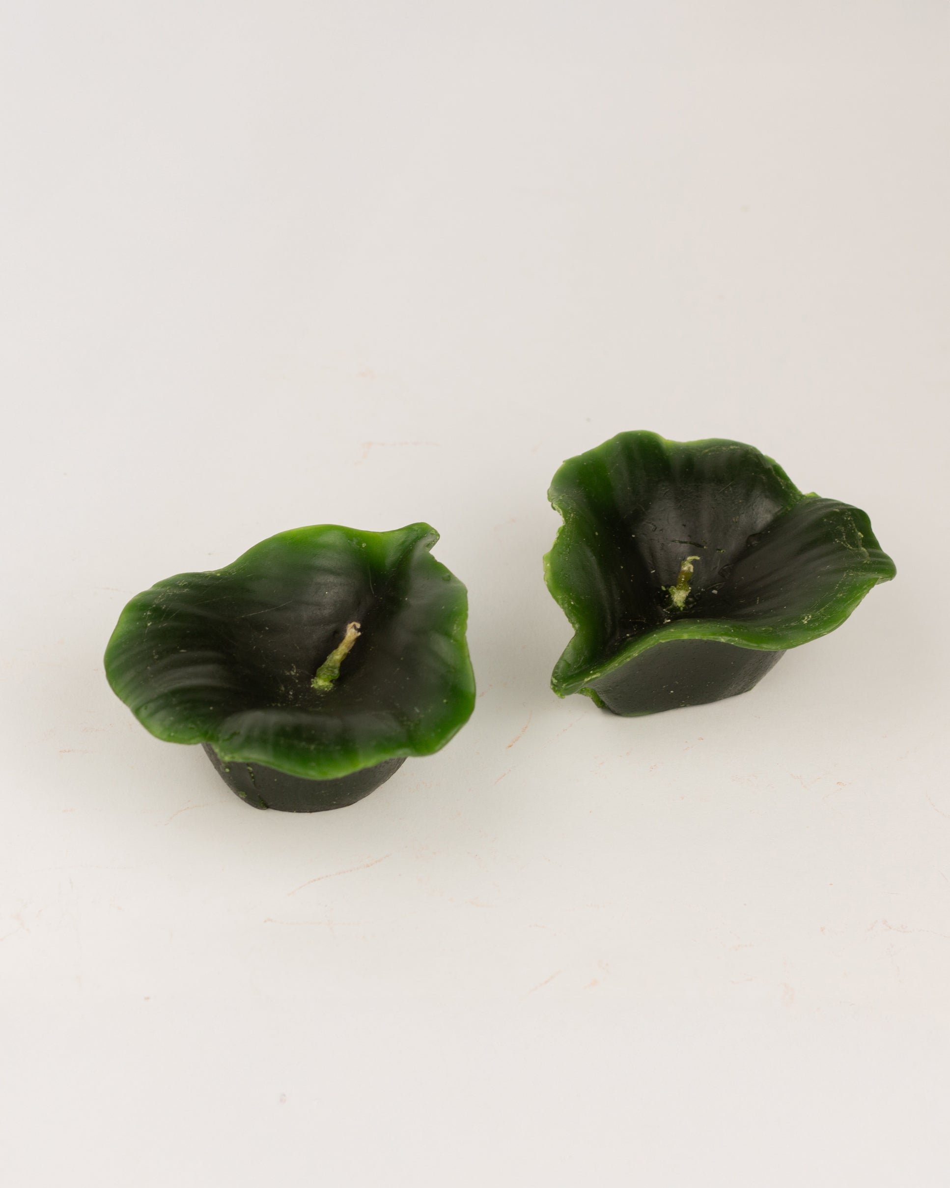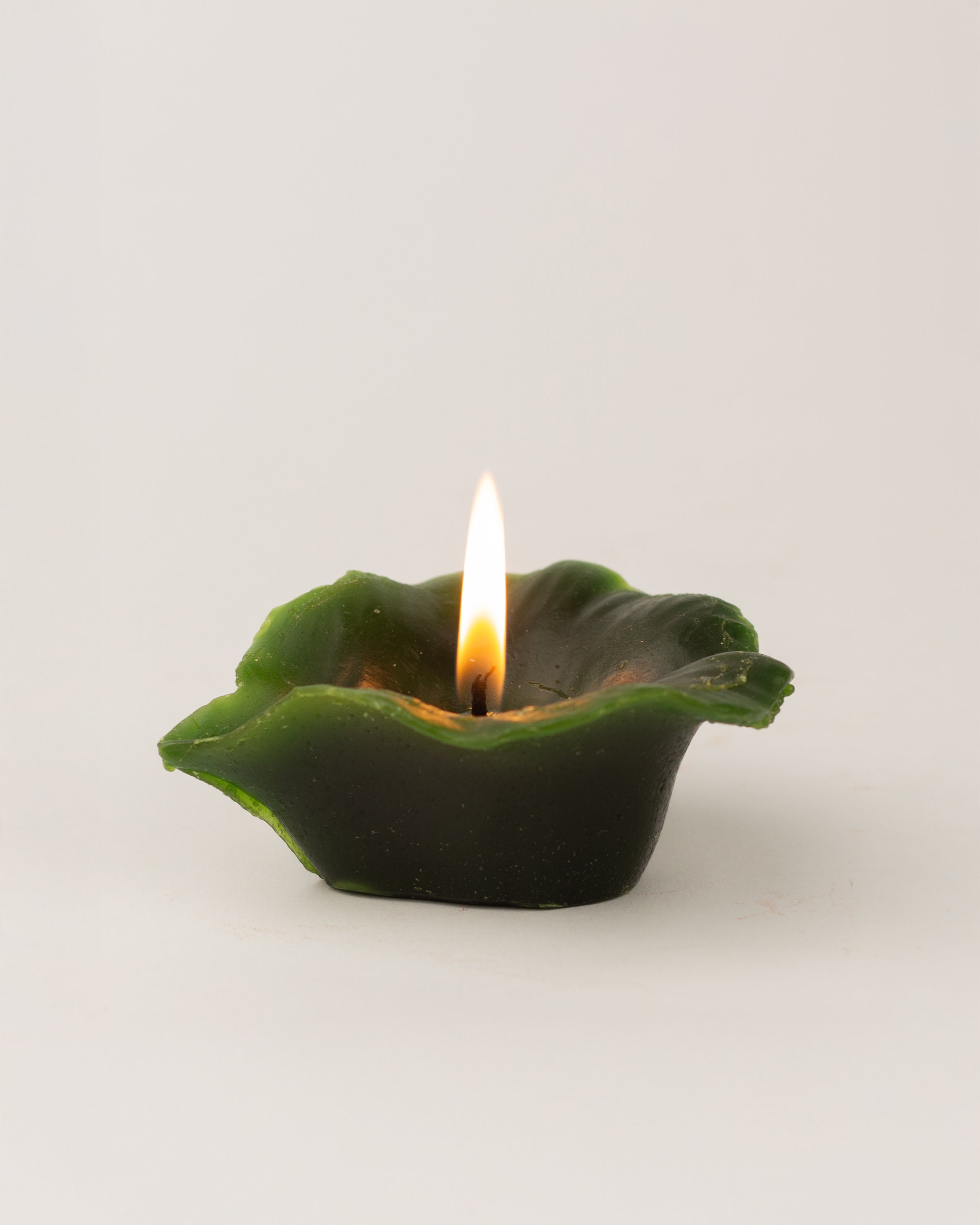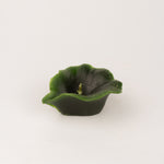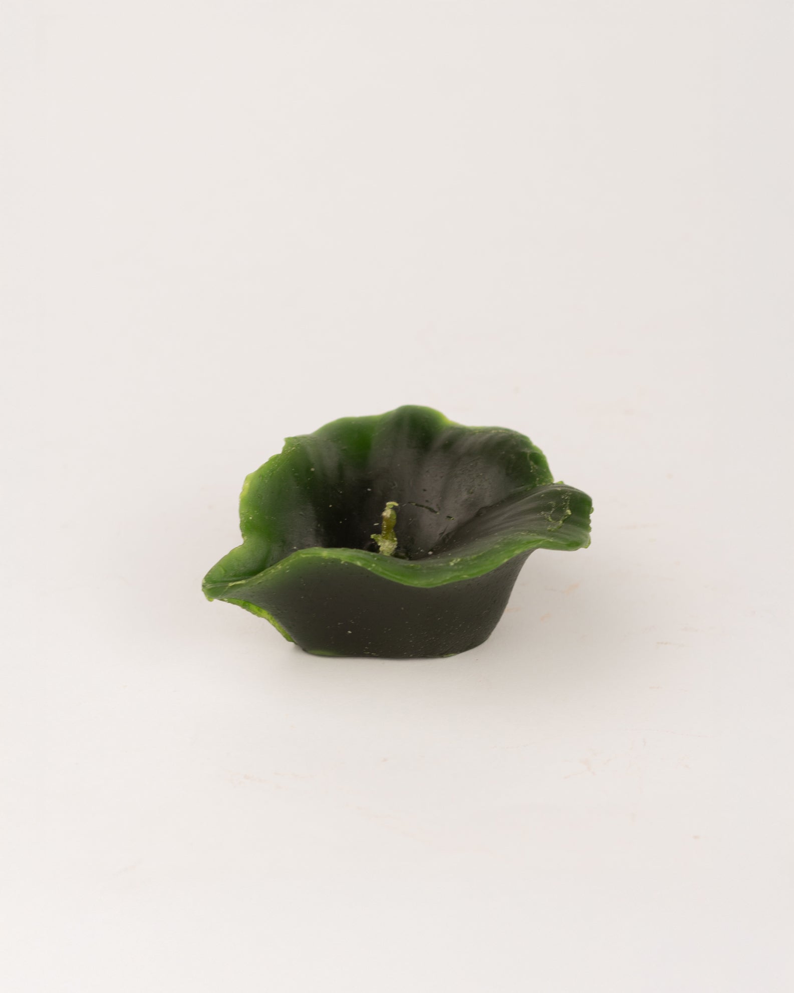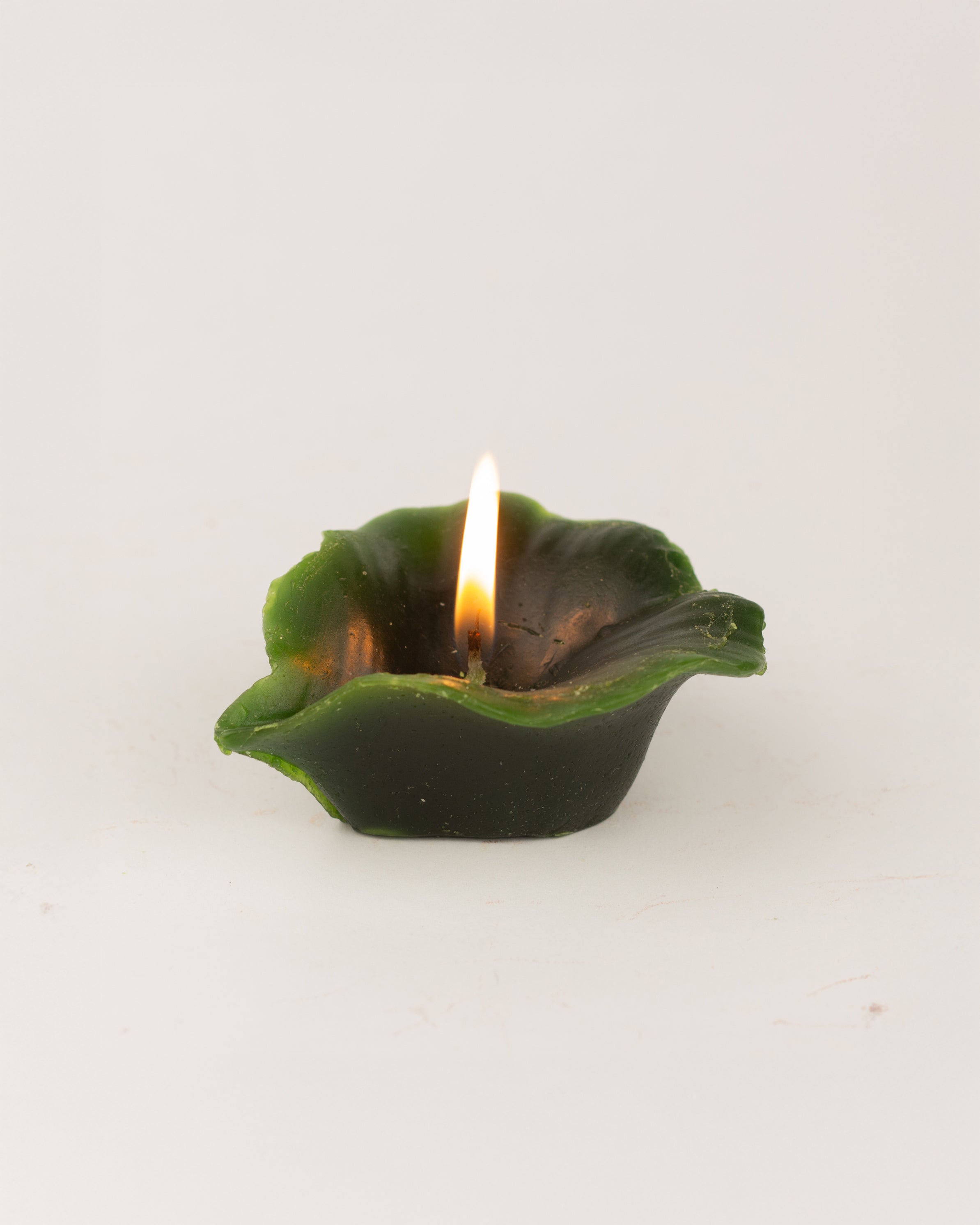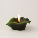 A flower-shaped beeswax candle in calming green, crafted to add a gentle touch of nature and light to your space.