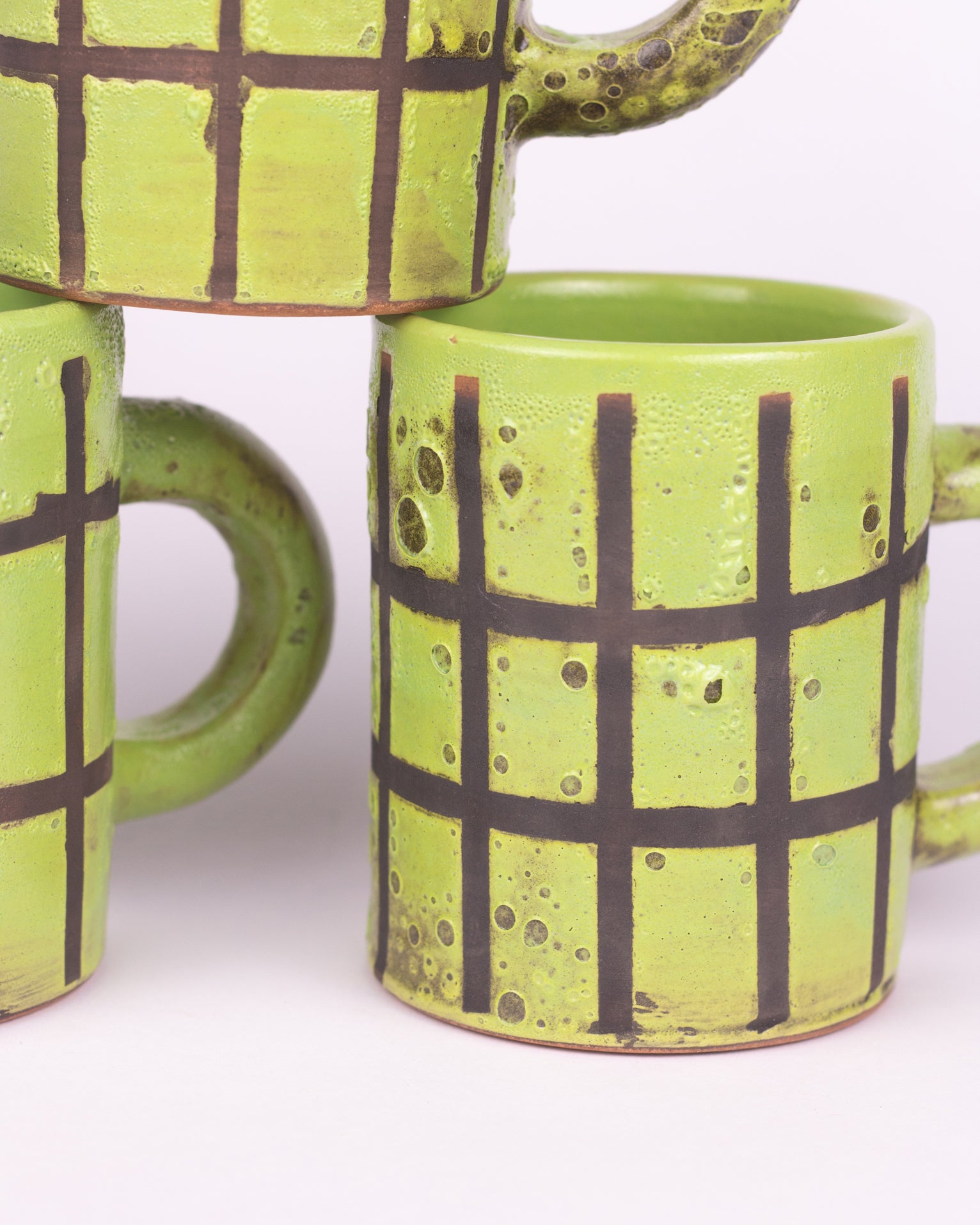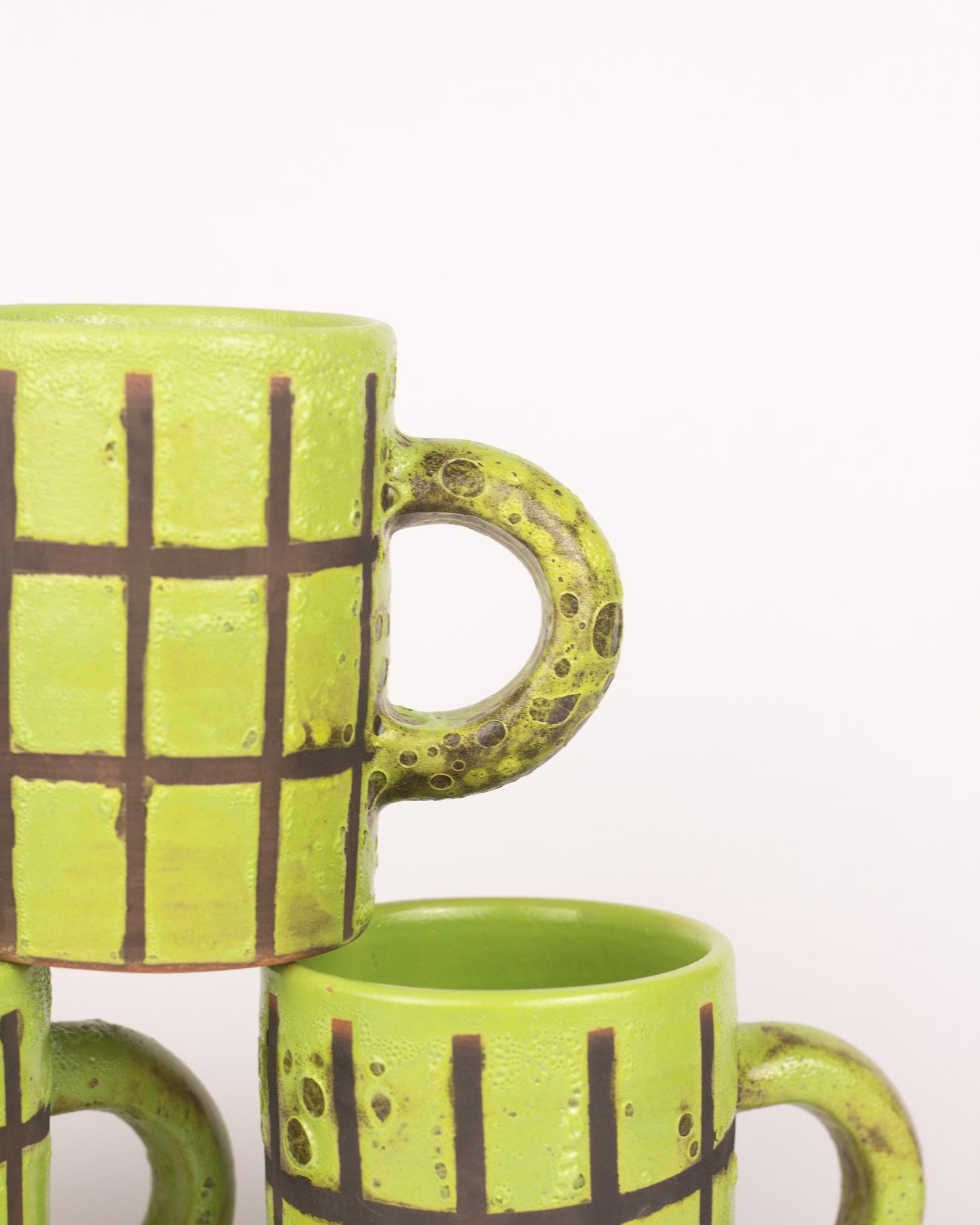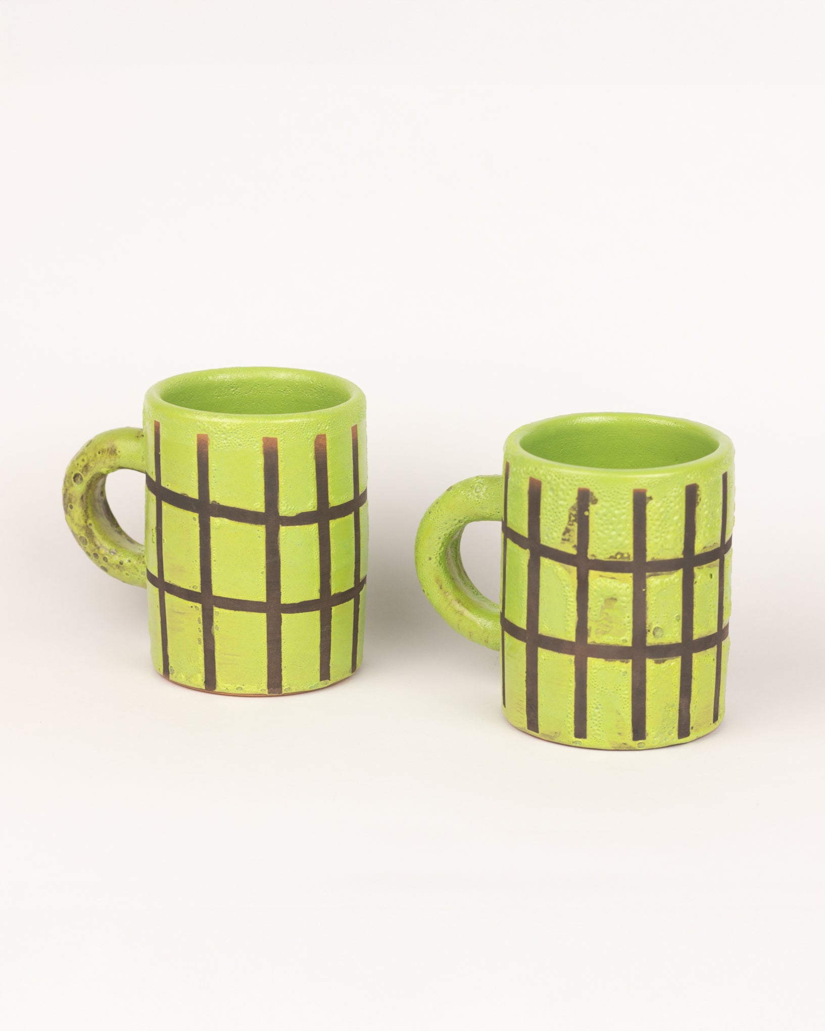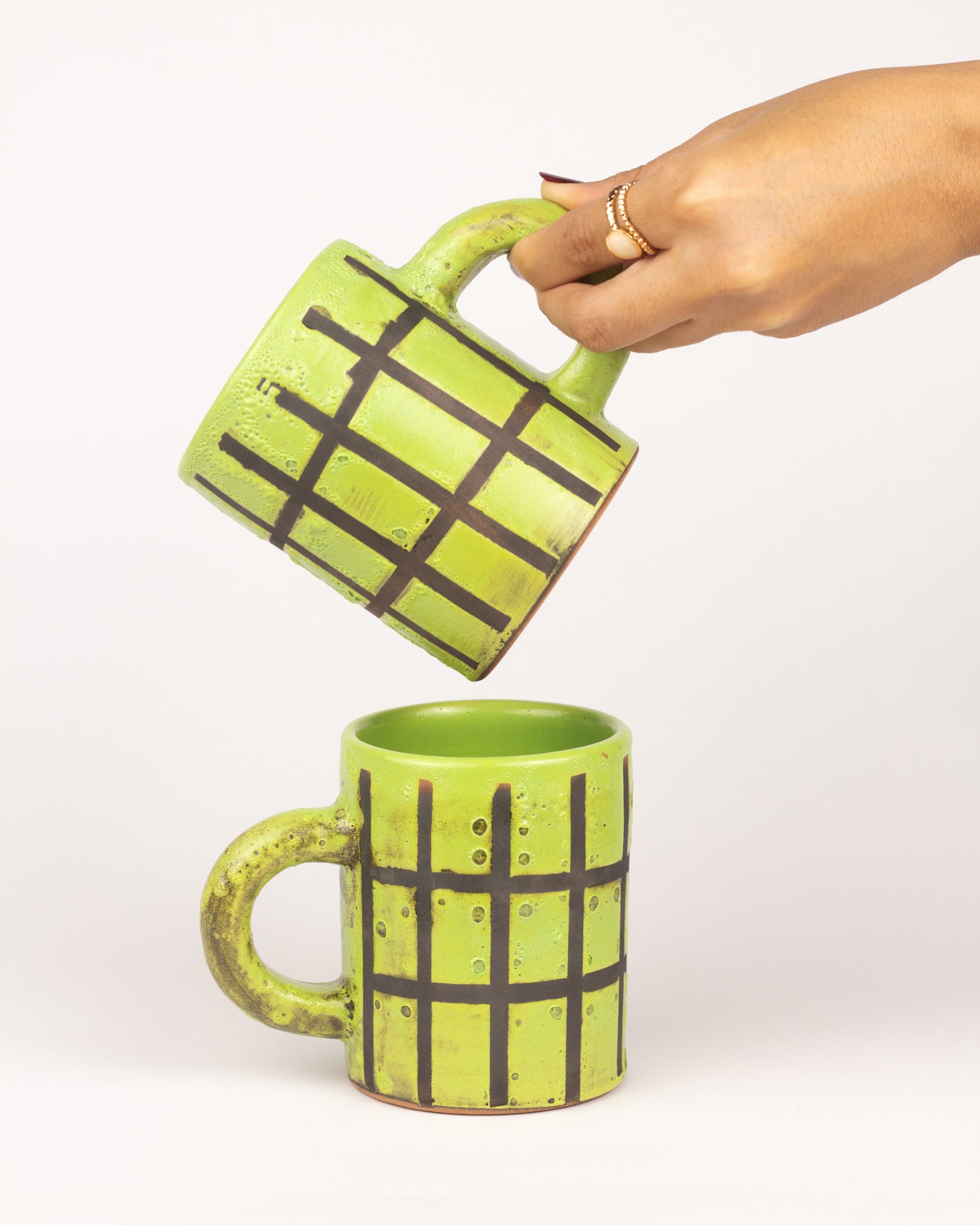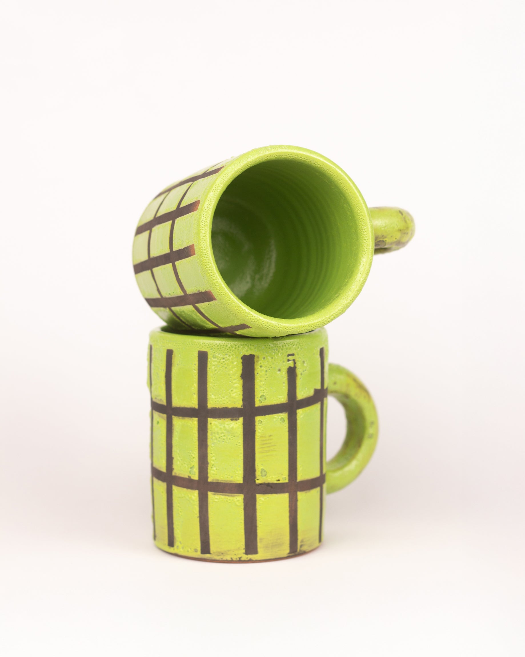 Inspired by the iconic tile patterns of Egyptian coffee shops, this handcrafted clay mug features a subtle grid design that celebrates everyday culture with a touch of art. Its unique texture and warm glaze make every sip feel special, whether it’s your morning coffee or an evening tea.