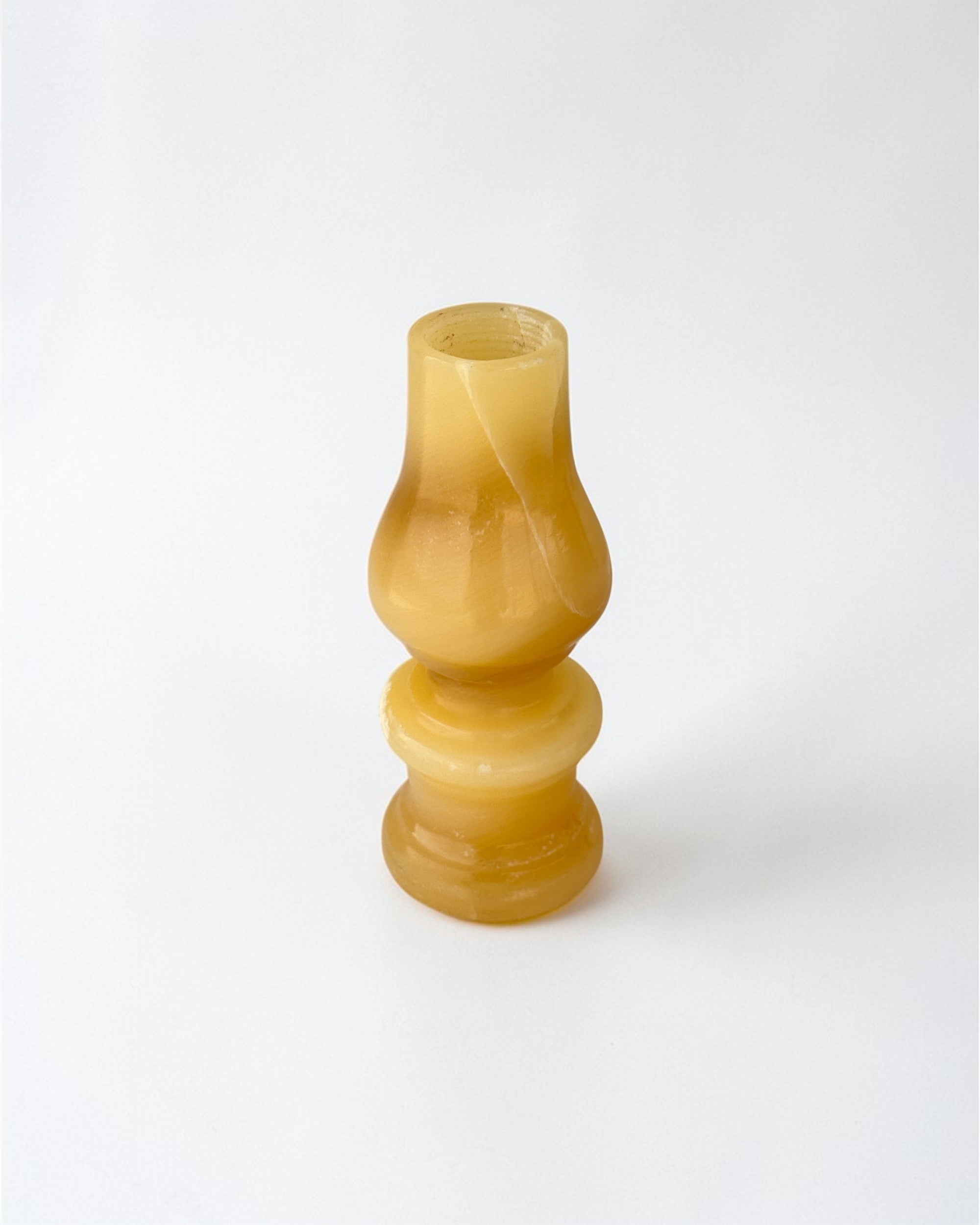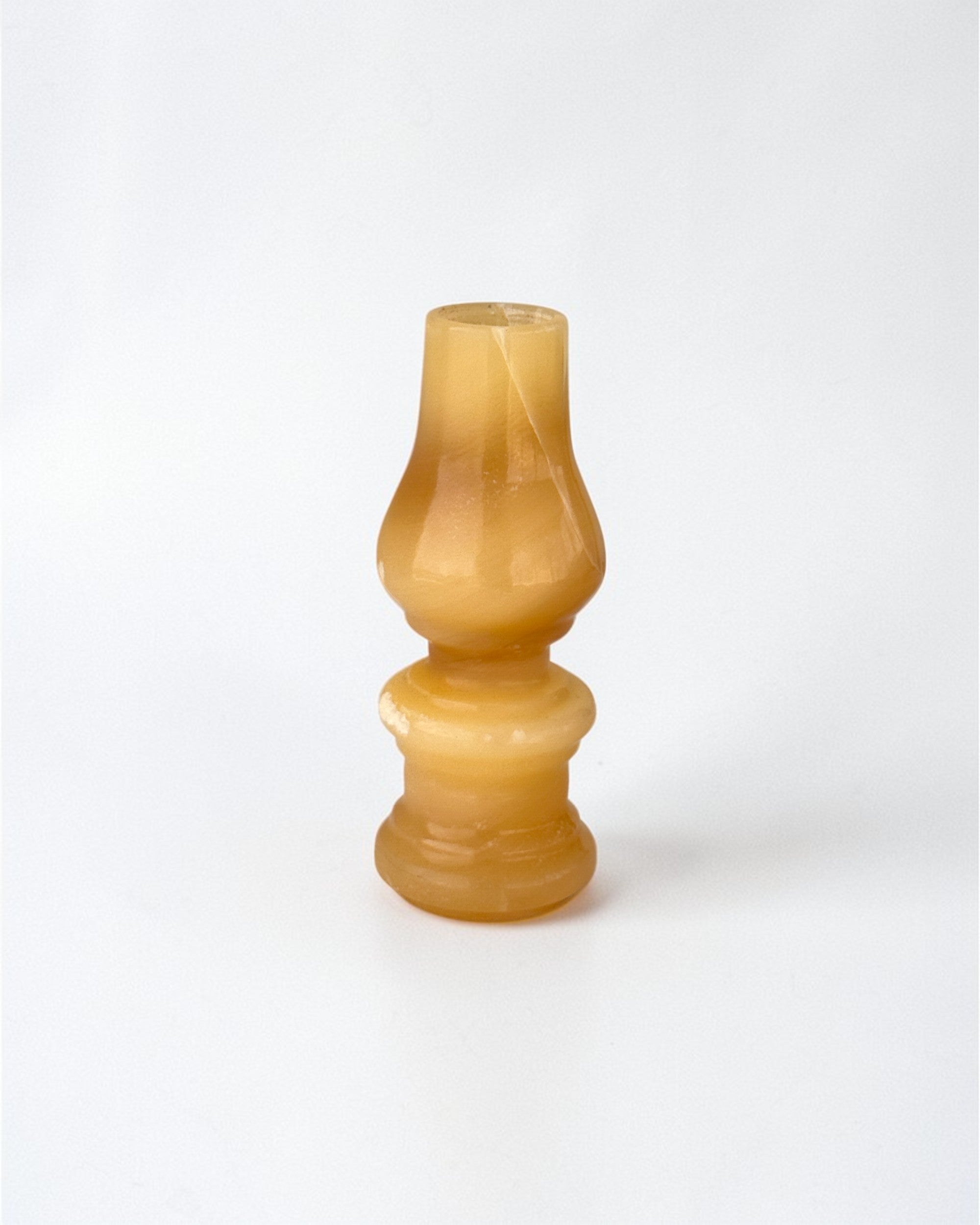 Inspired by Egypt’s traditional gas and kerosene lamps (lambet gaz), Lamba captures their iconic silhouette in alabaster. Designed for taper candles, its compact form brings a sculptural, heritage-inspired presence to any table or shelf.