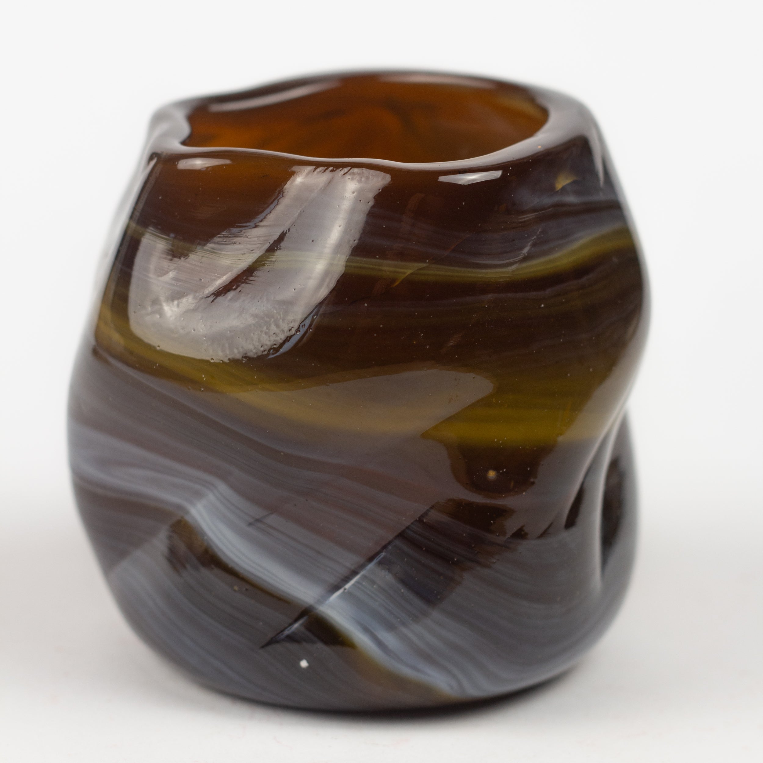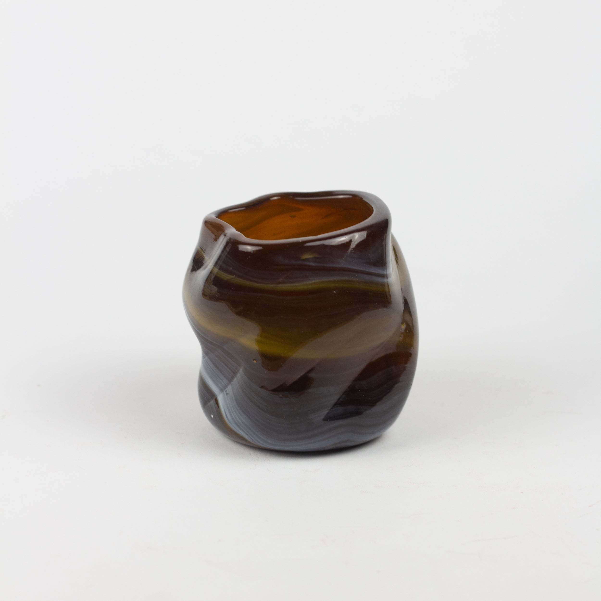 Handcrafted from recycled glass, this cup features a beautiful swirl of brown and white, creating a marbled, wavy effect full of movement. Each piece is unique, capturing the organic flow and warmth of artisanal craftsmanship.