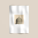 Originally illustrated in Parallèle de dômes (1877) by Émile Prisse d’Avennes, this architectural sketch highlights the distinctive dome of the Mausoleum of Qurqumas, a Mamluk monument in Cairo’s Qarafa. The artwork captures the harmony and precision of Islamic architecture as seen through a 19th-century European lens.