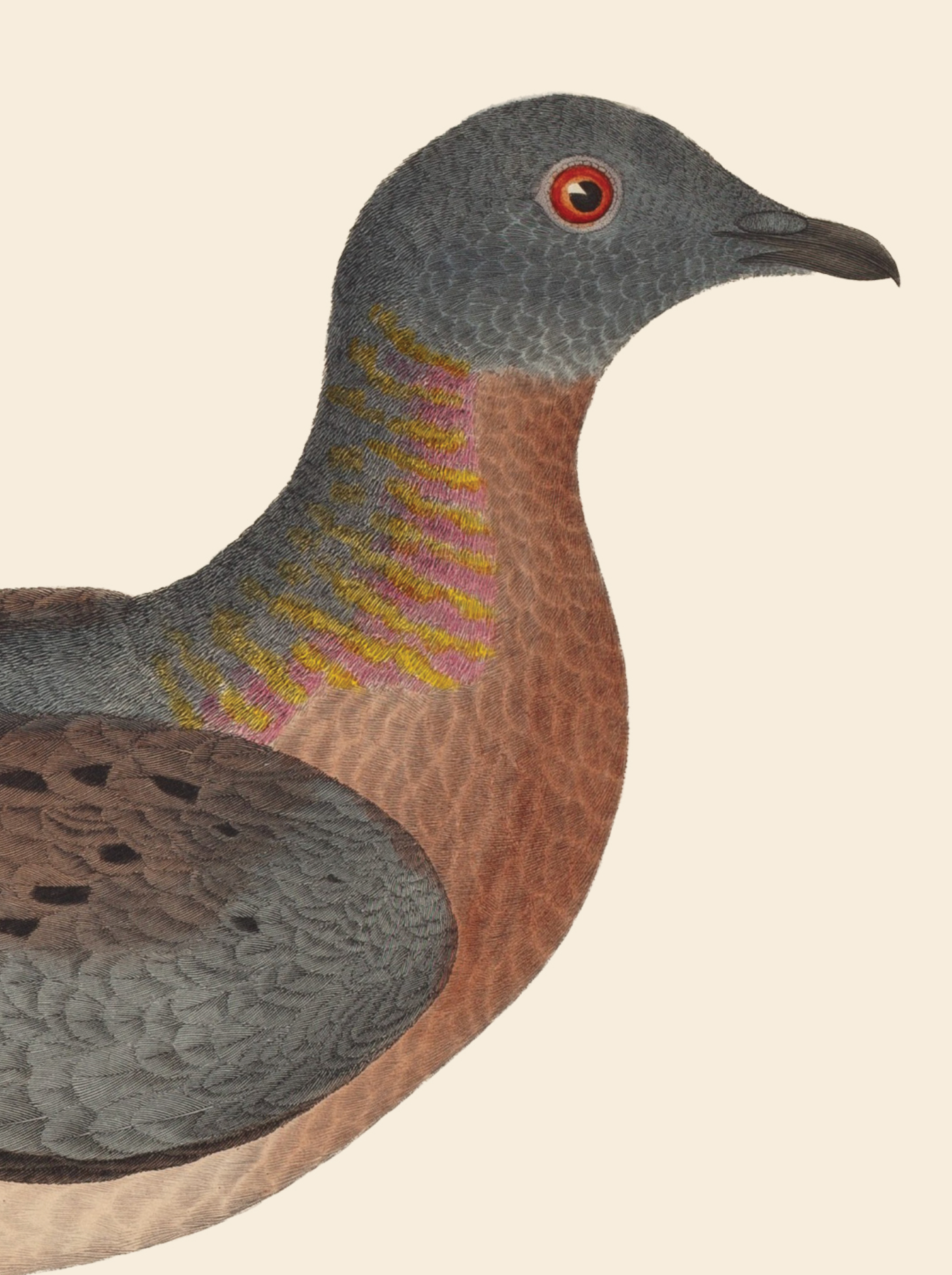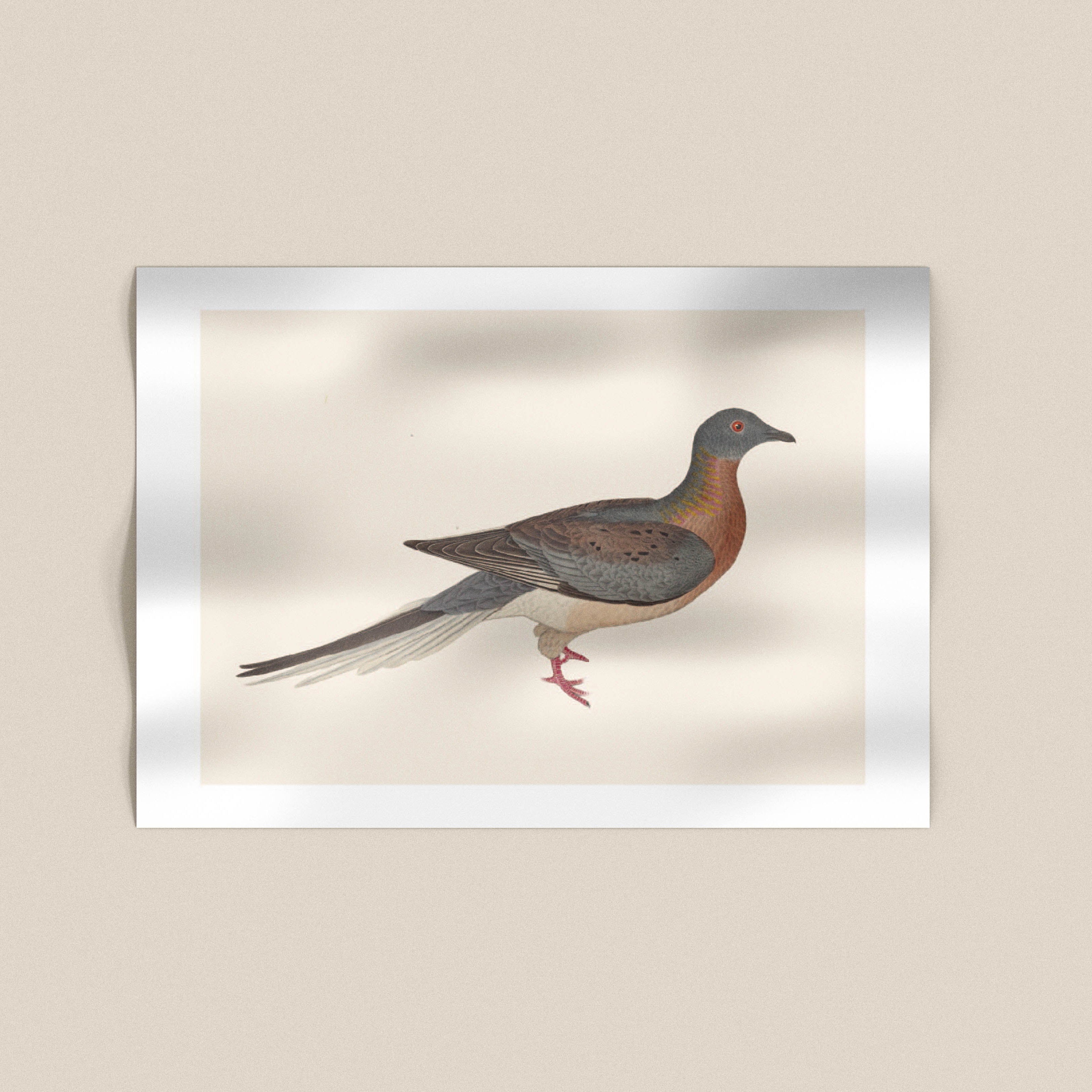 Originally illustrated in the 19th century, this detailed artwork captures the delicate form and plumage of the Passenger Pigeon — a species once abundant across North America. Its calm posture and natural hues make it a timeless addition to any space, celebrating the beauty of nature and craftsmanship in illustration.