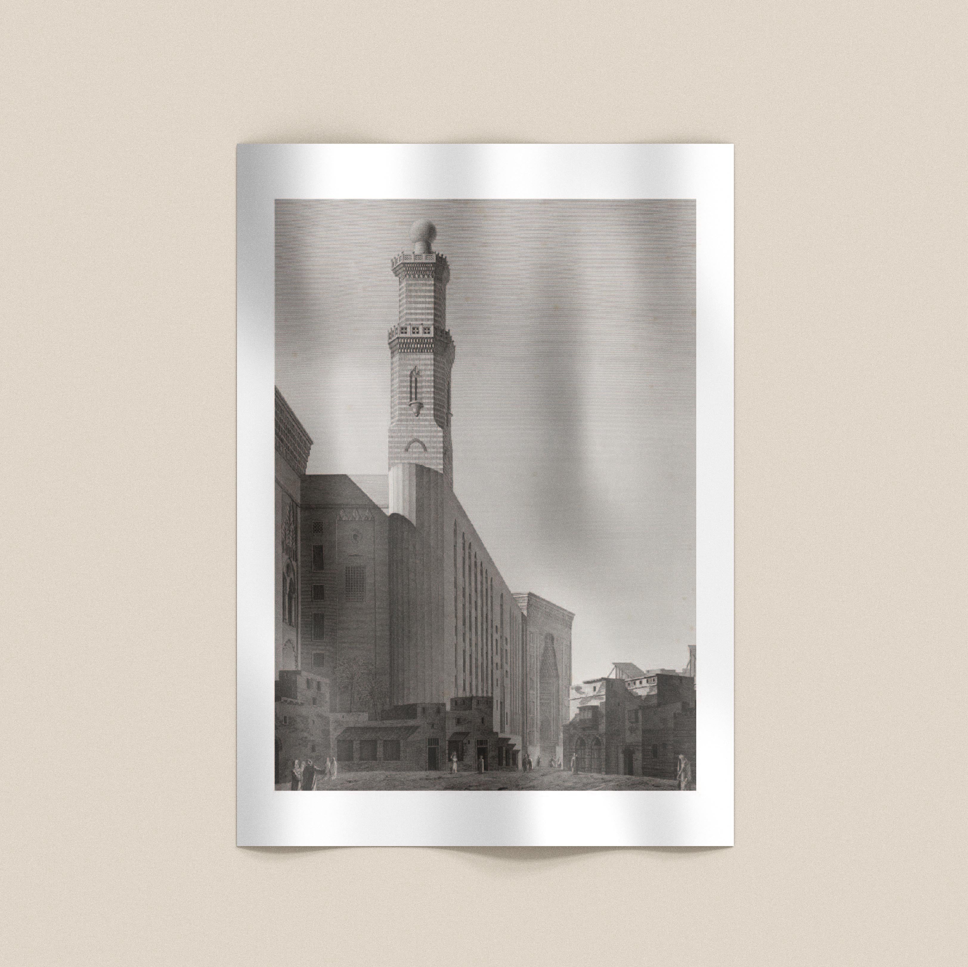 Originally published in Le Caire (19th century), this archival illustration captures the grand exterior perspective of the Mosque of Sultan Hasan — a masterpiece of Mamluk architecture and one of Cairo’s most iconic landmarks. Curated from a public domain source, it has been carefully reproduced to honor Egypt’s enduring architectural heritage.