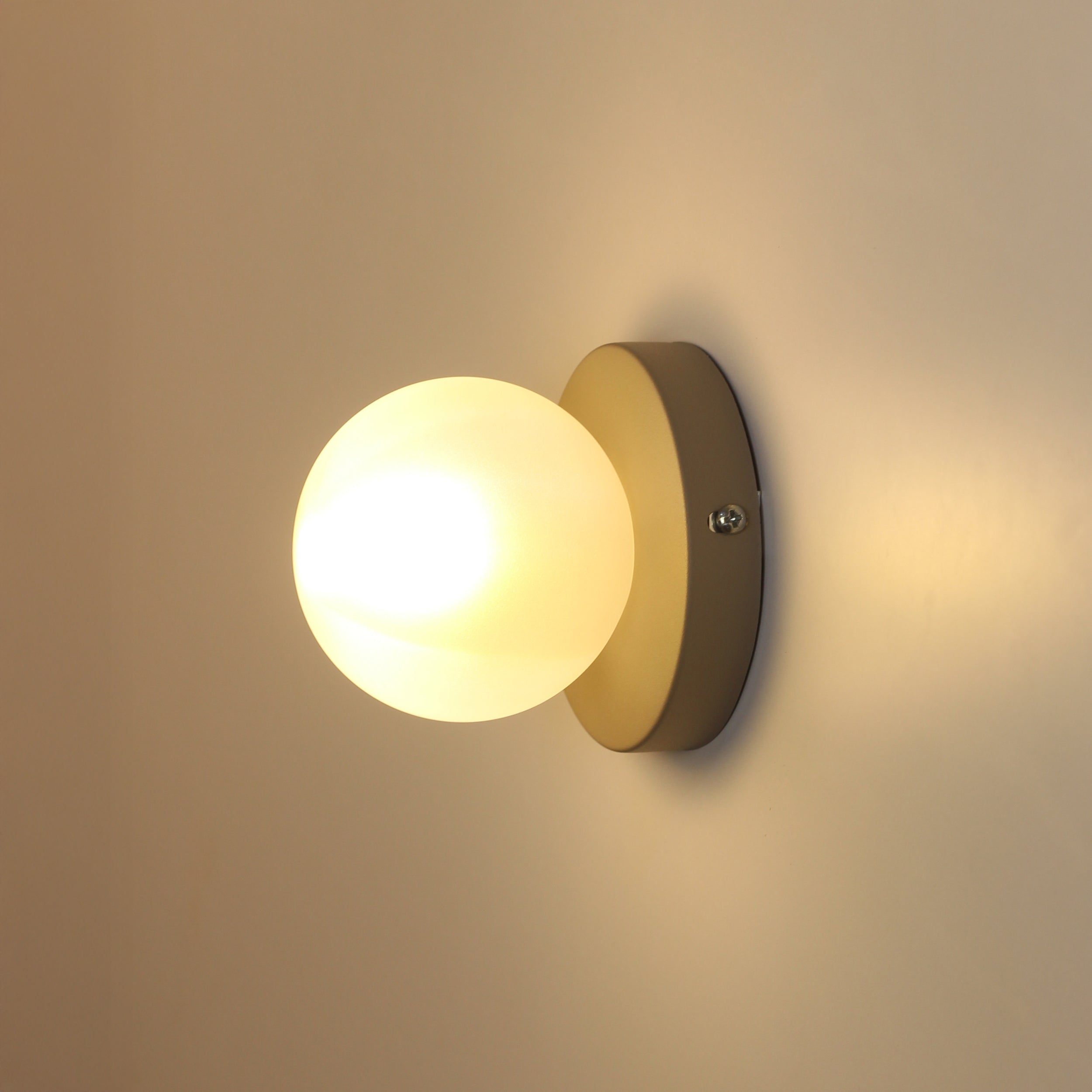 Marsa is a minimal, mini wall lamp inspired by marina lights—crafted from metal and topped with a glowing glass globe, perfect for layering or creating soft, coastal impact.