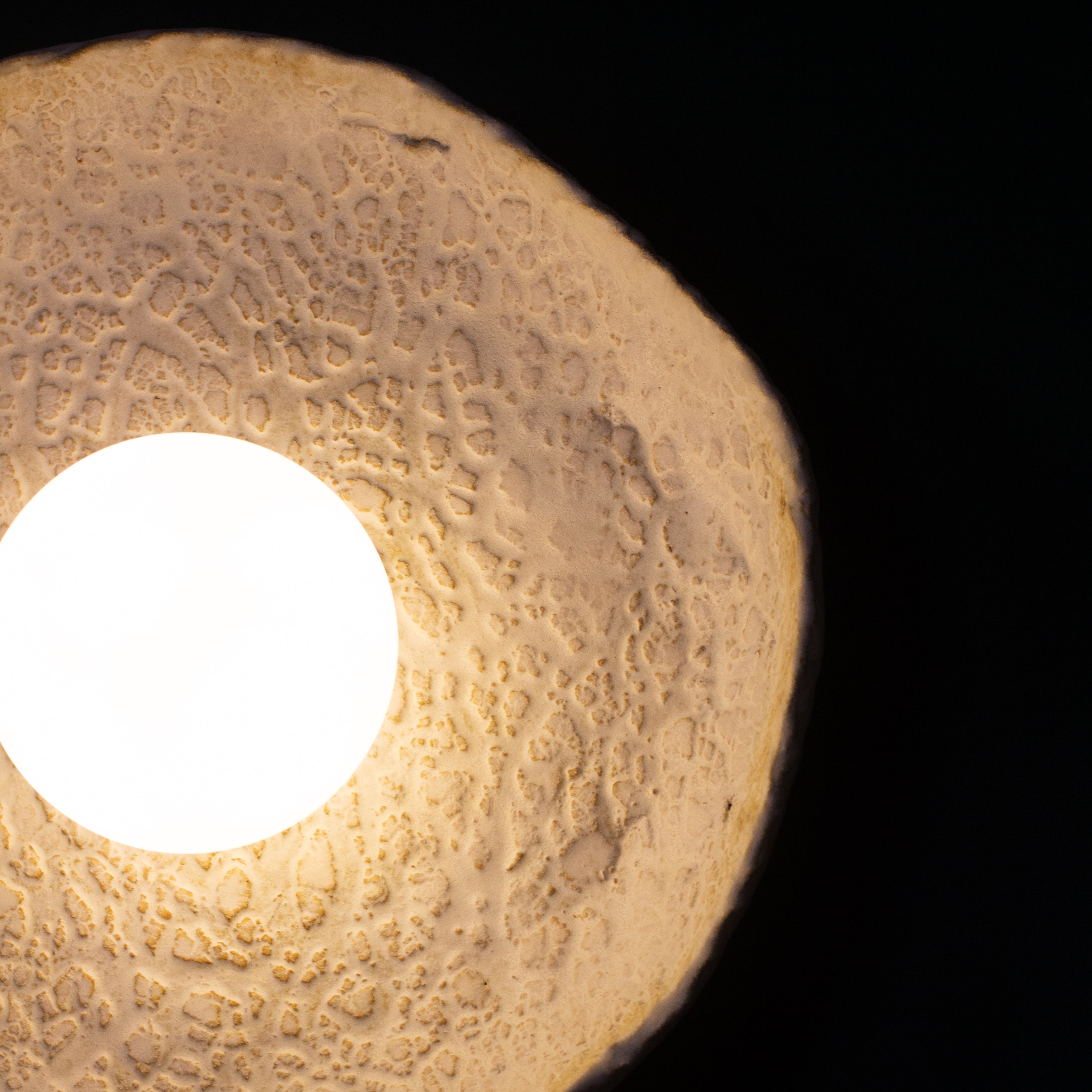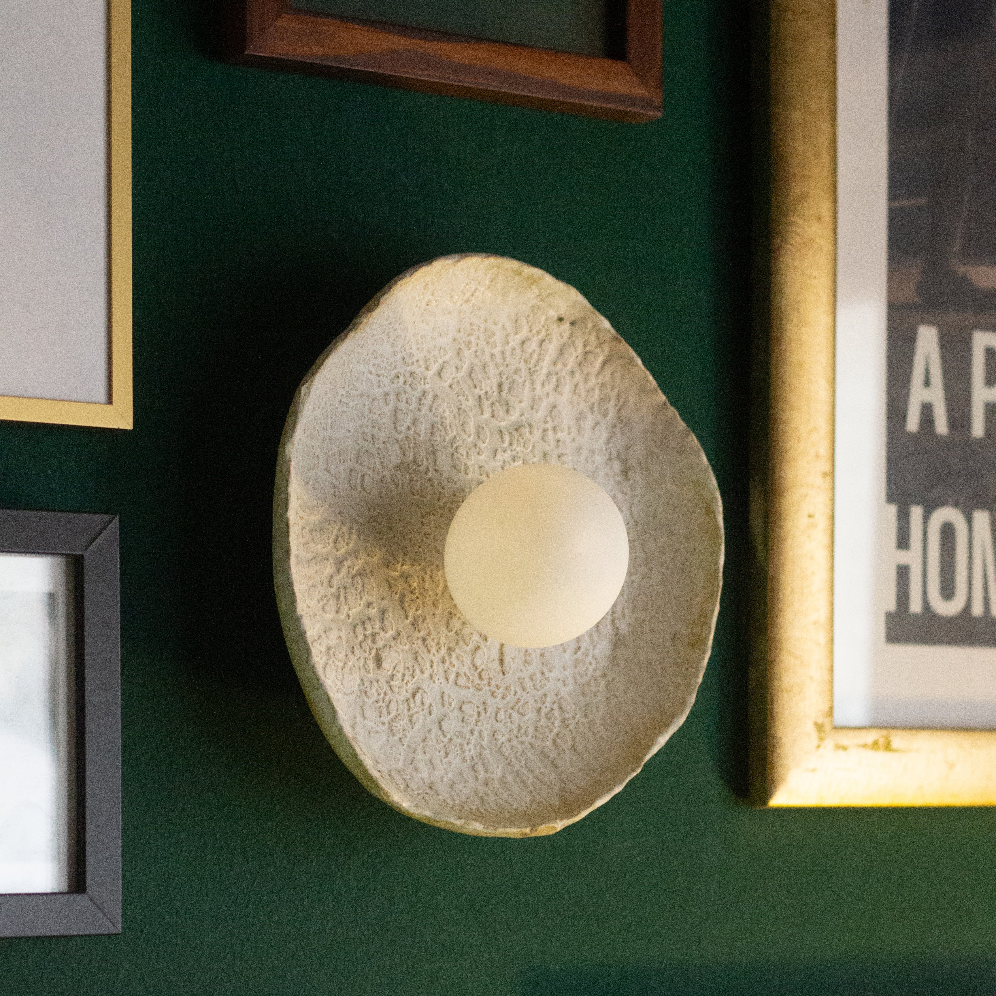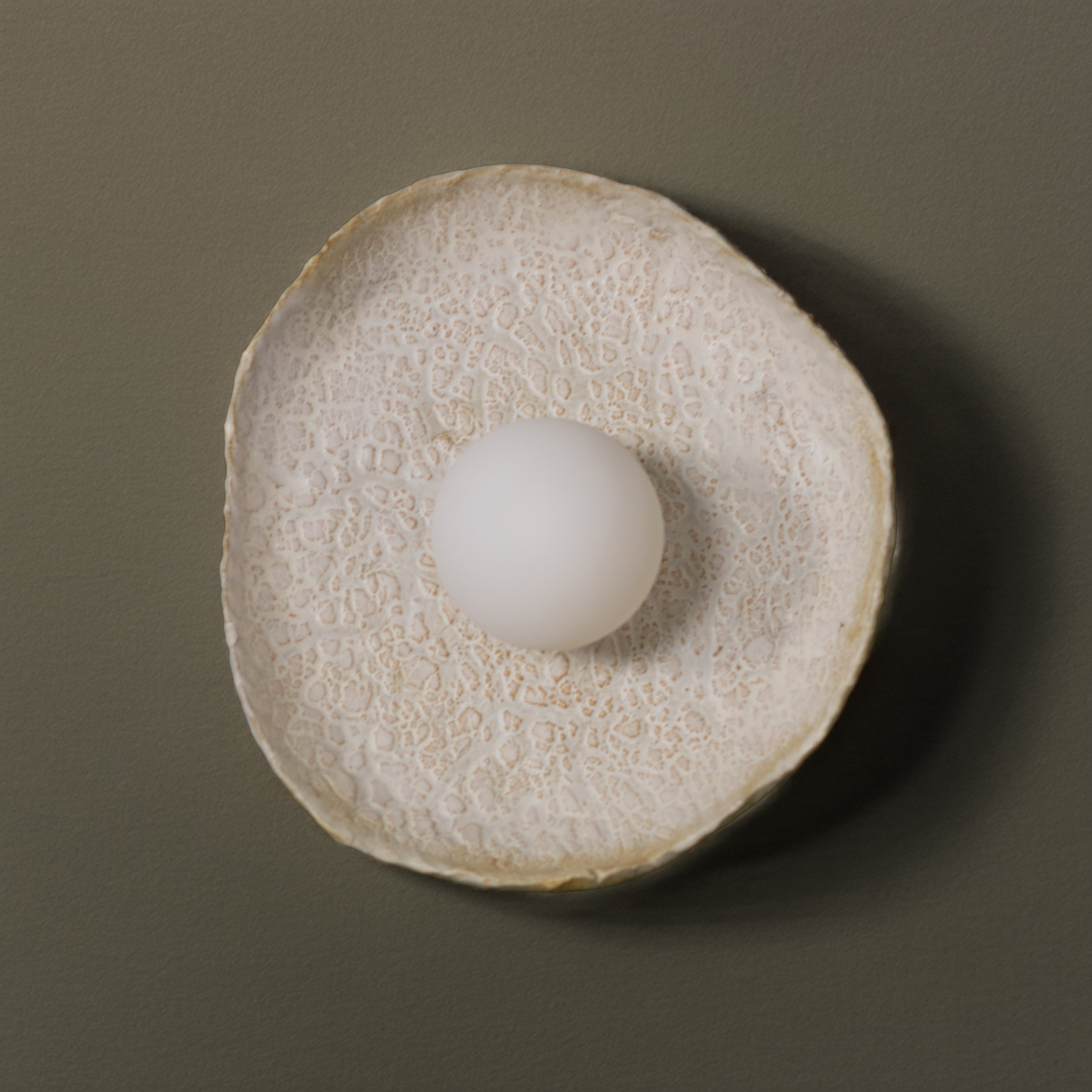 Sadaf, meaning ‘pearl’ in Arabic, is a handcrafted wall lamp made from textured clay, evoking the sensory experience of the sea. With its warm, soft glow, this handmade piece captures the feeling of sun-kissed moments at the beach, bringing the essence of nature’s textures into your home.