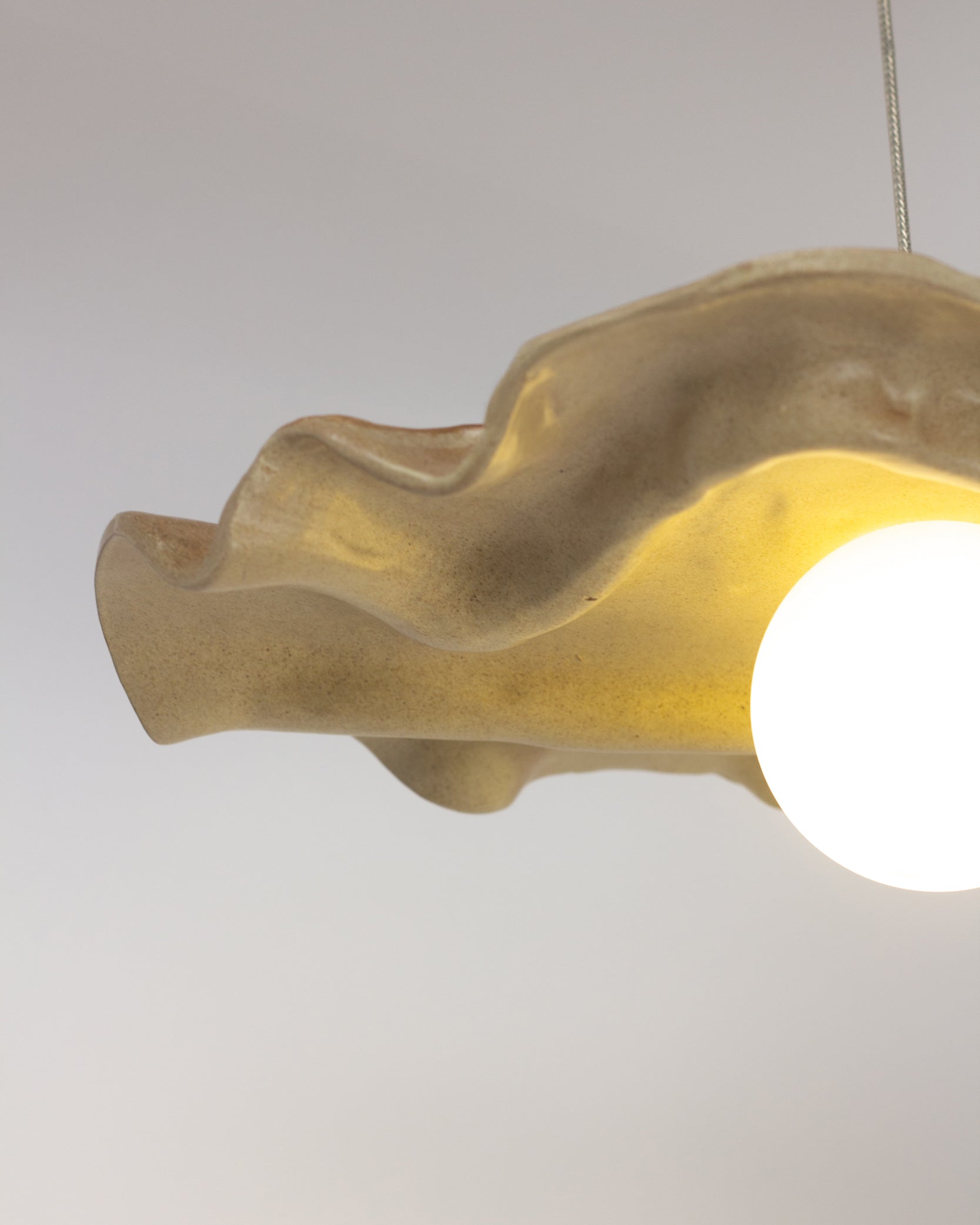 Karaneesh pendant light is inspired by a timeless Cairo moment — the golden afternoon sun filtering softly into the home. Just like fabric catching the breeze, its flowing clay form captures both movement and warmth, bringing the glow of Cairo’s afternoons into your space.