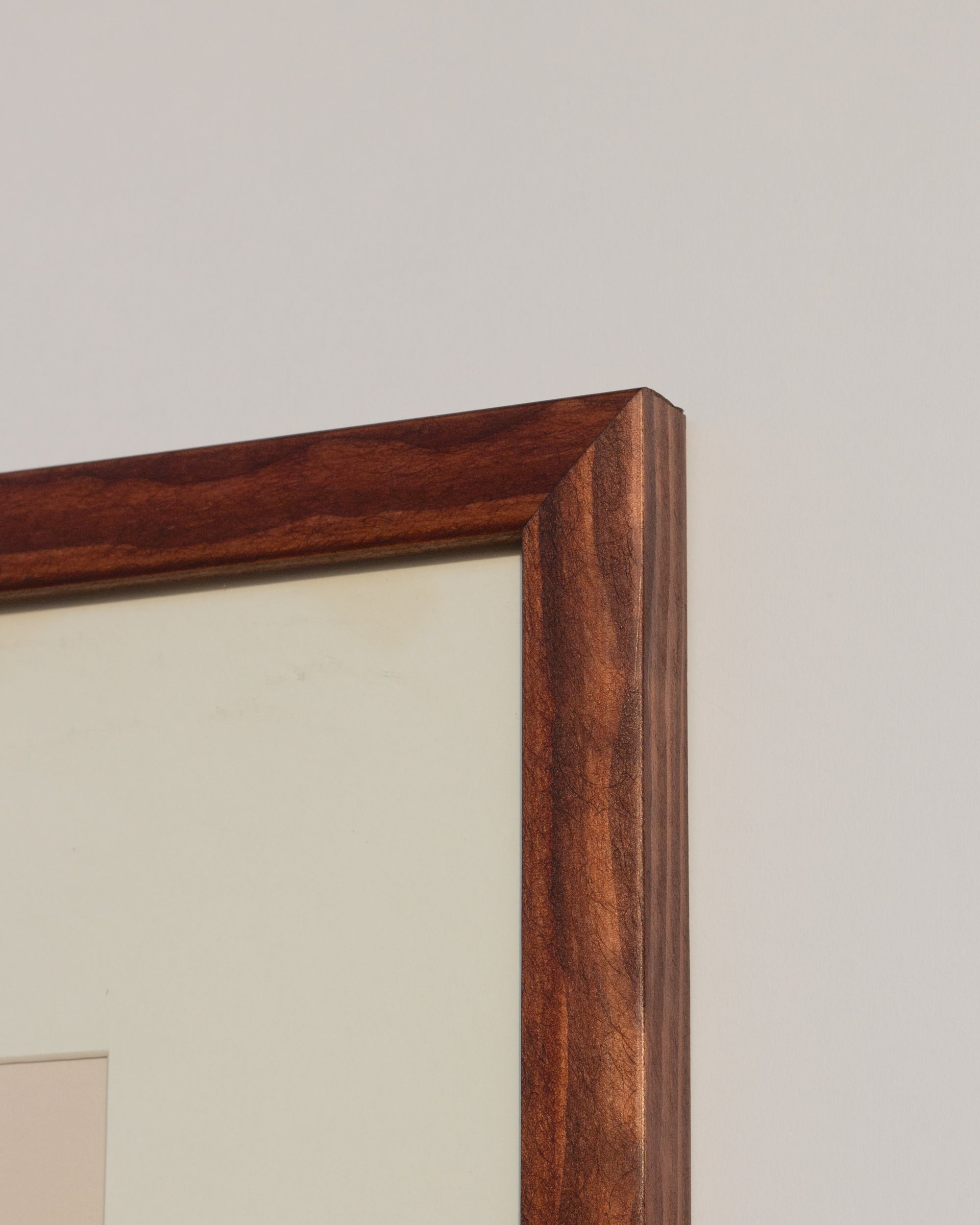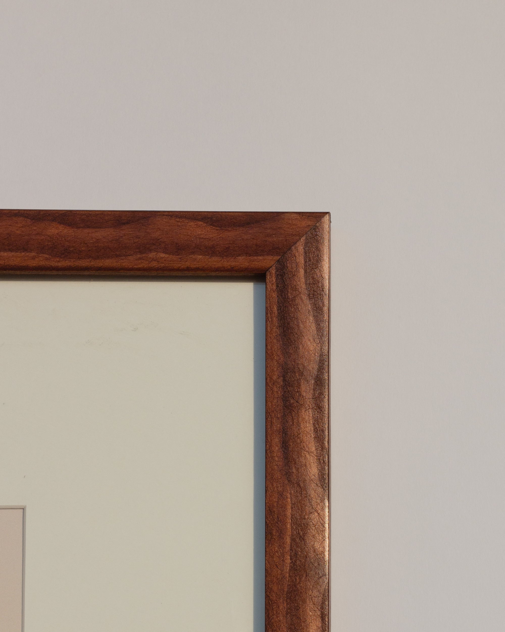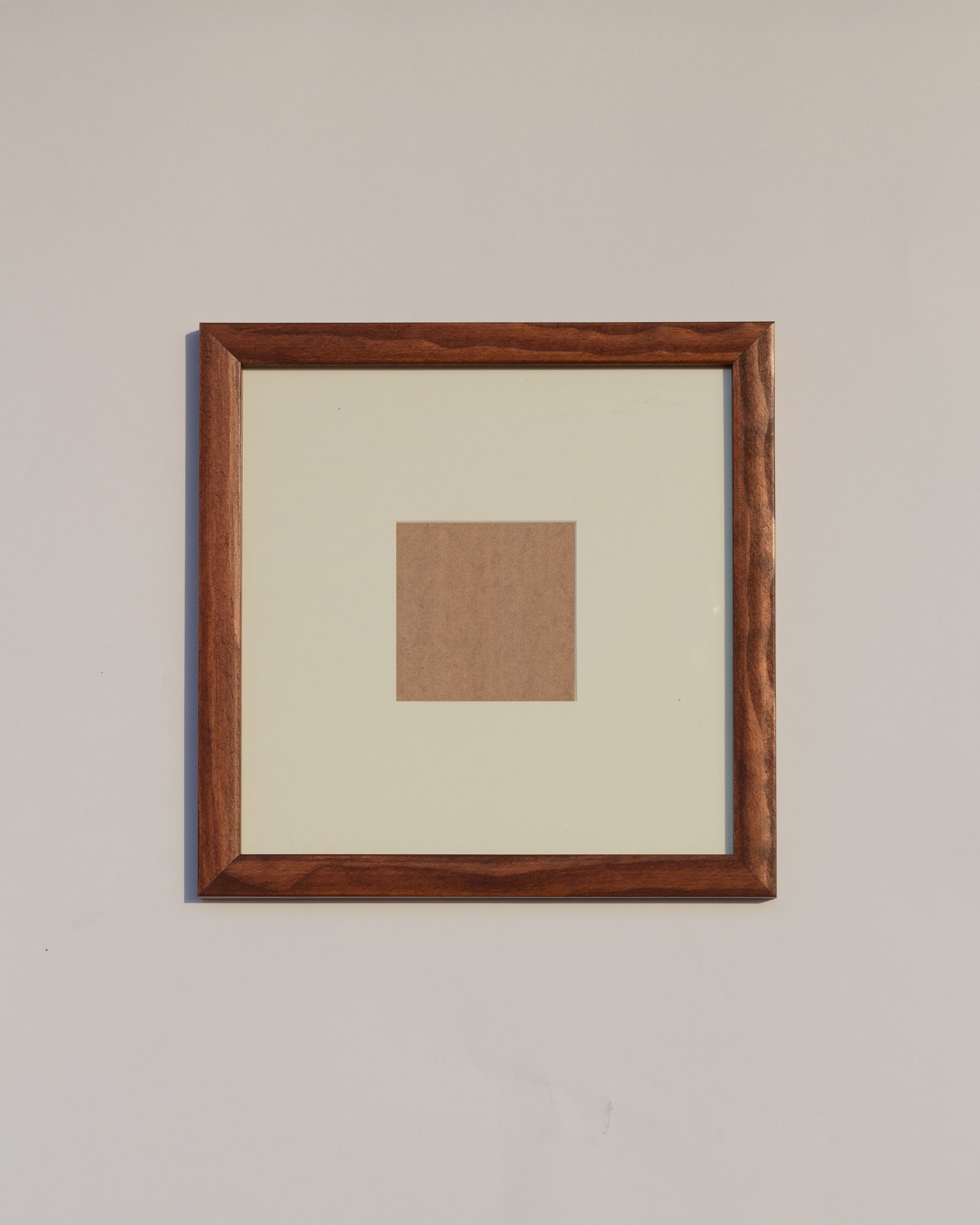 A squared frame with a large paper mount, leaving a smaller visible space for the artwork. This design draws attention directly to the piece, giving it room to breathe and stand out from its surroundings.