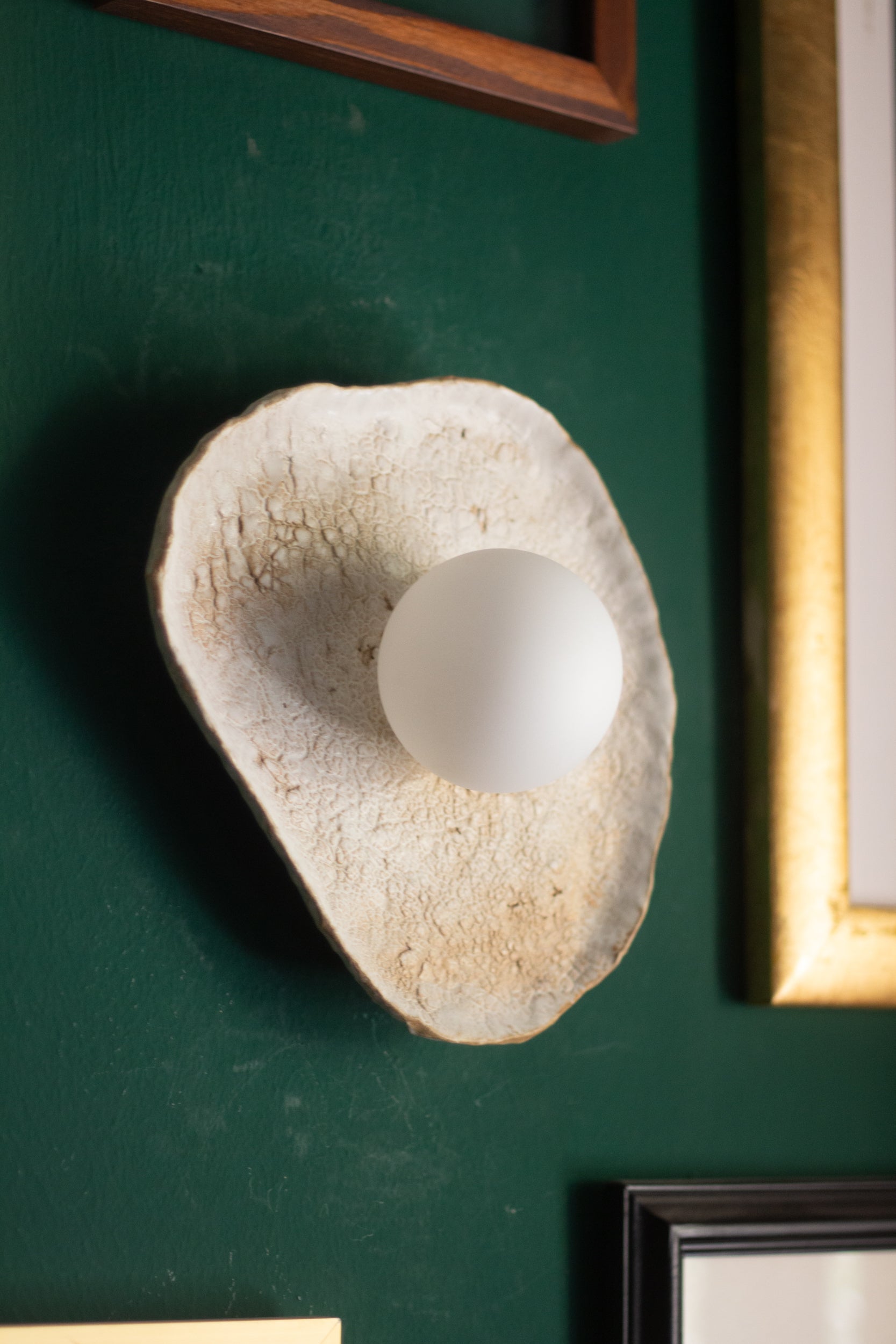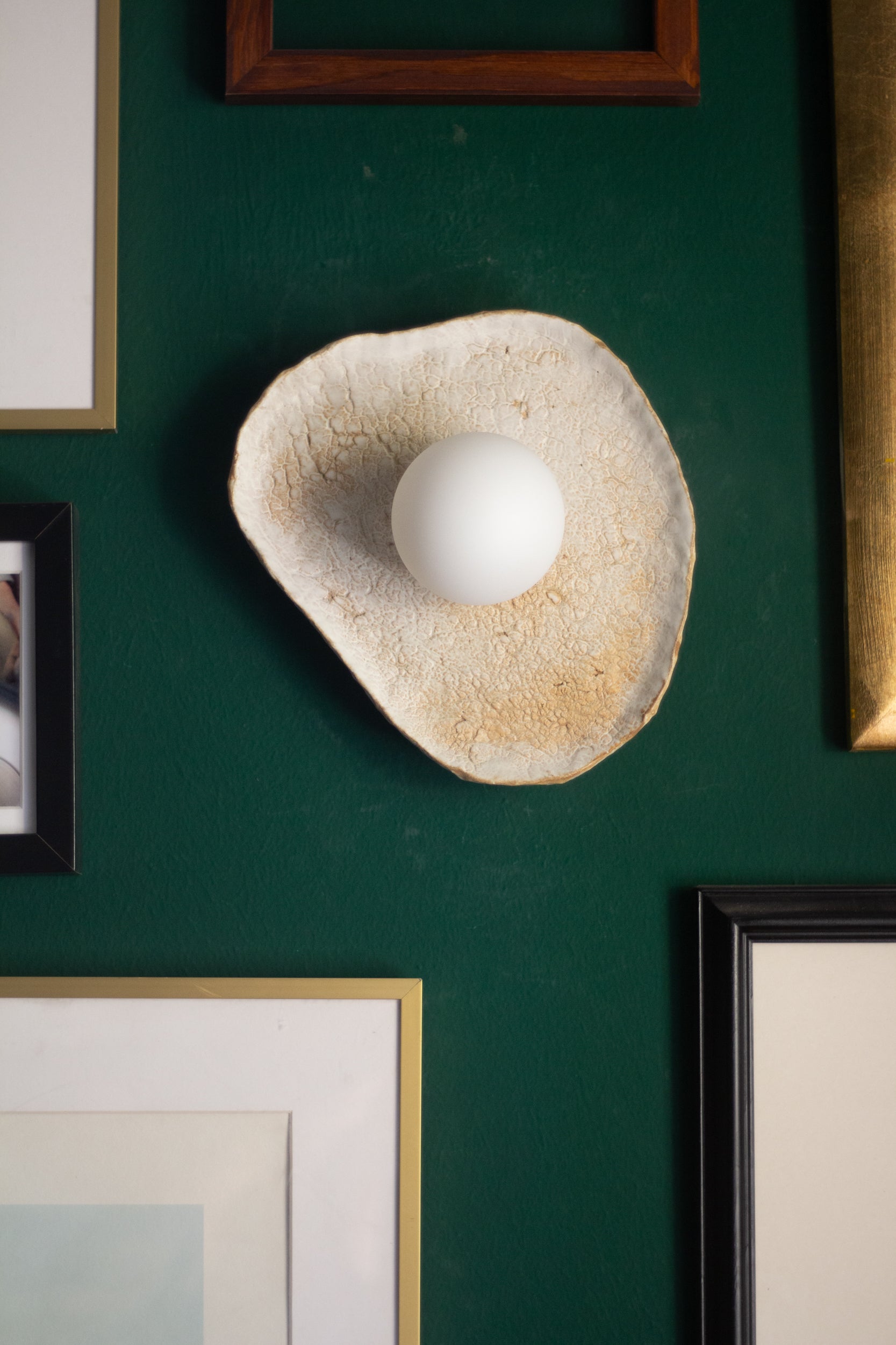 Sadaf, meaning ‘pearl’ in Arabic, is a handcrafted wall lamp made from textured clay, evoking the sensory experience of the sea. With its warm, soft glow, this handmade piece captures the feeling of sun-kissed moments at the beach, bringing the essence of nature’s textures into your home.
