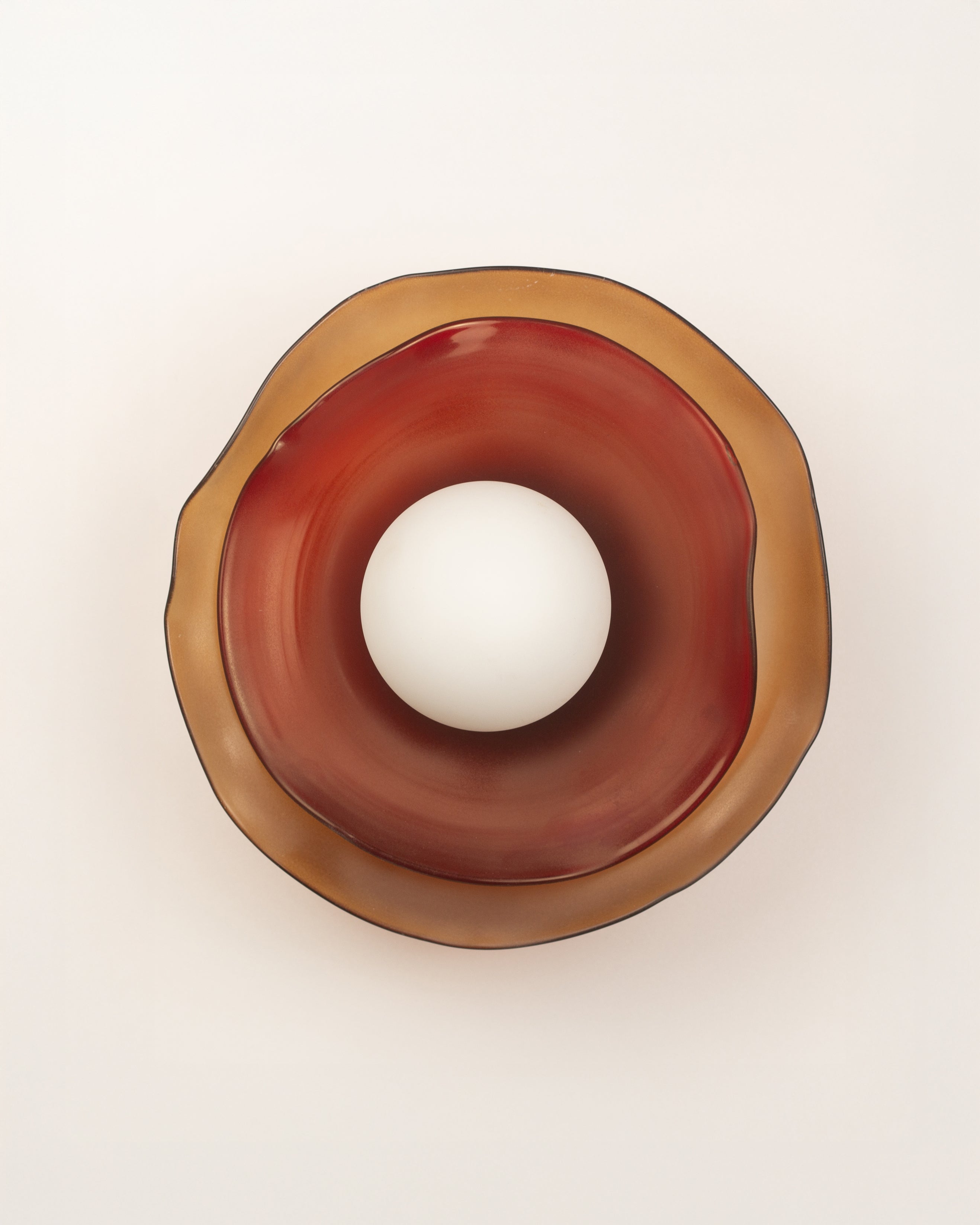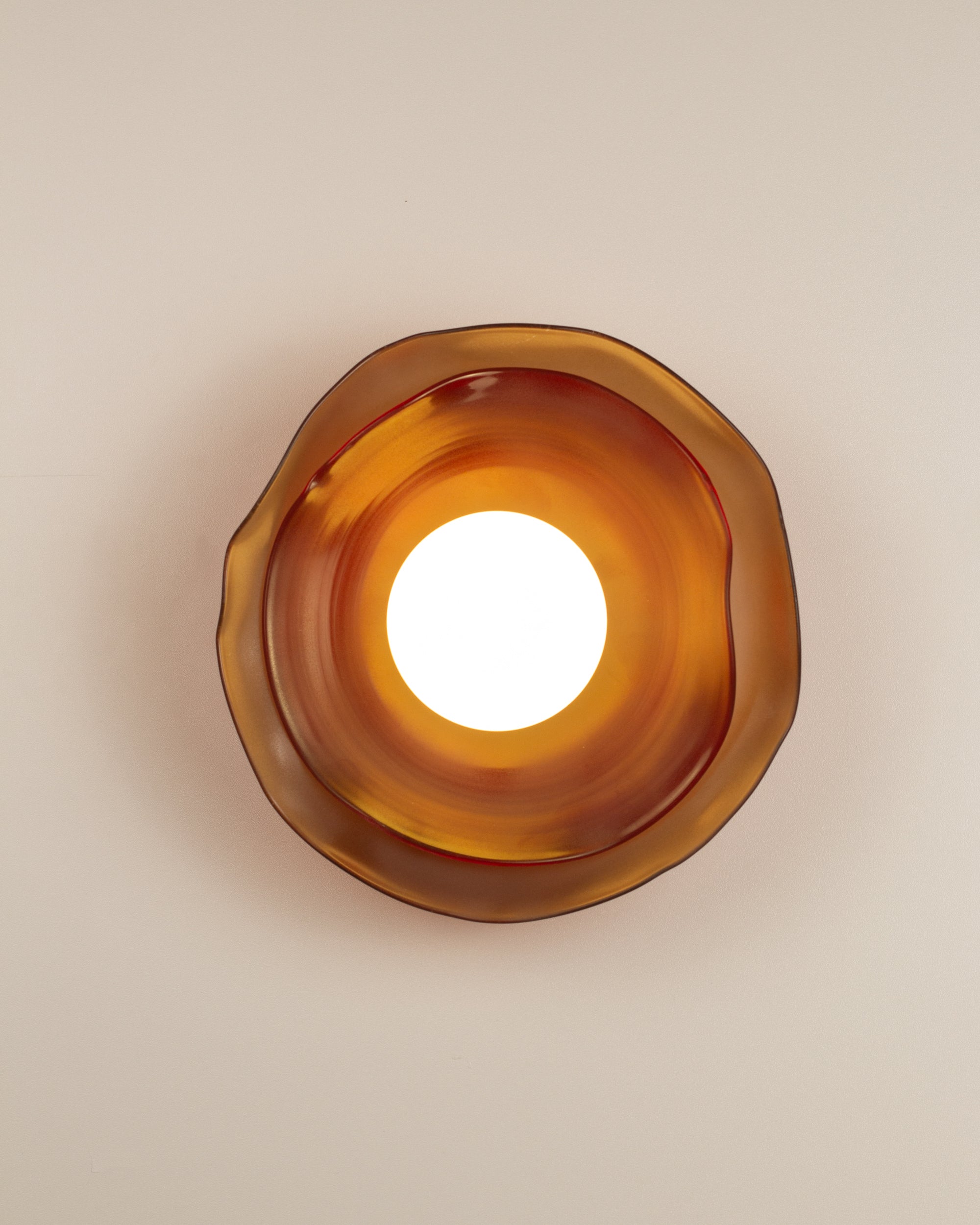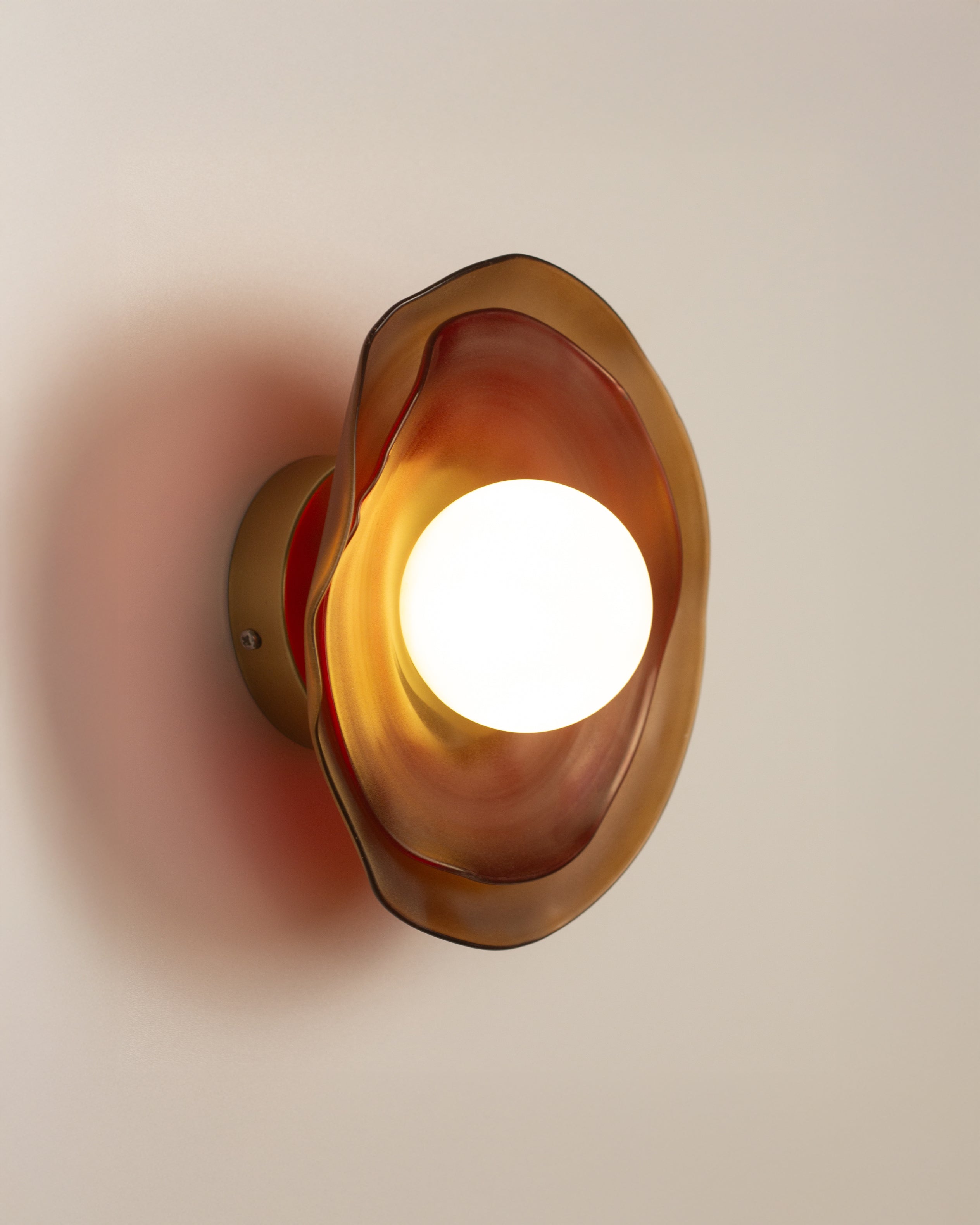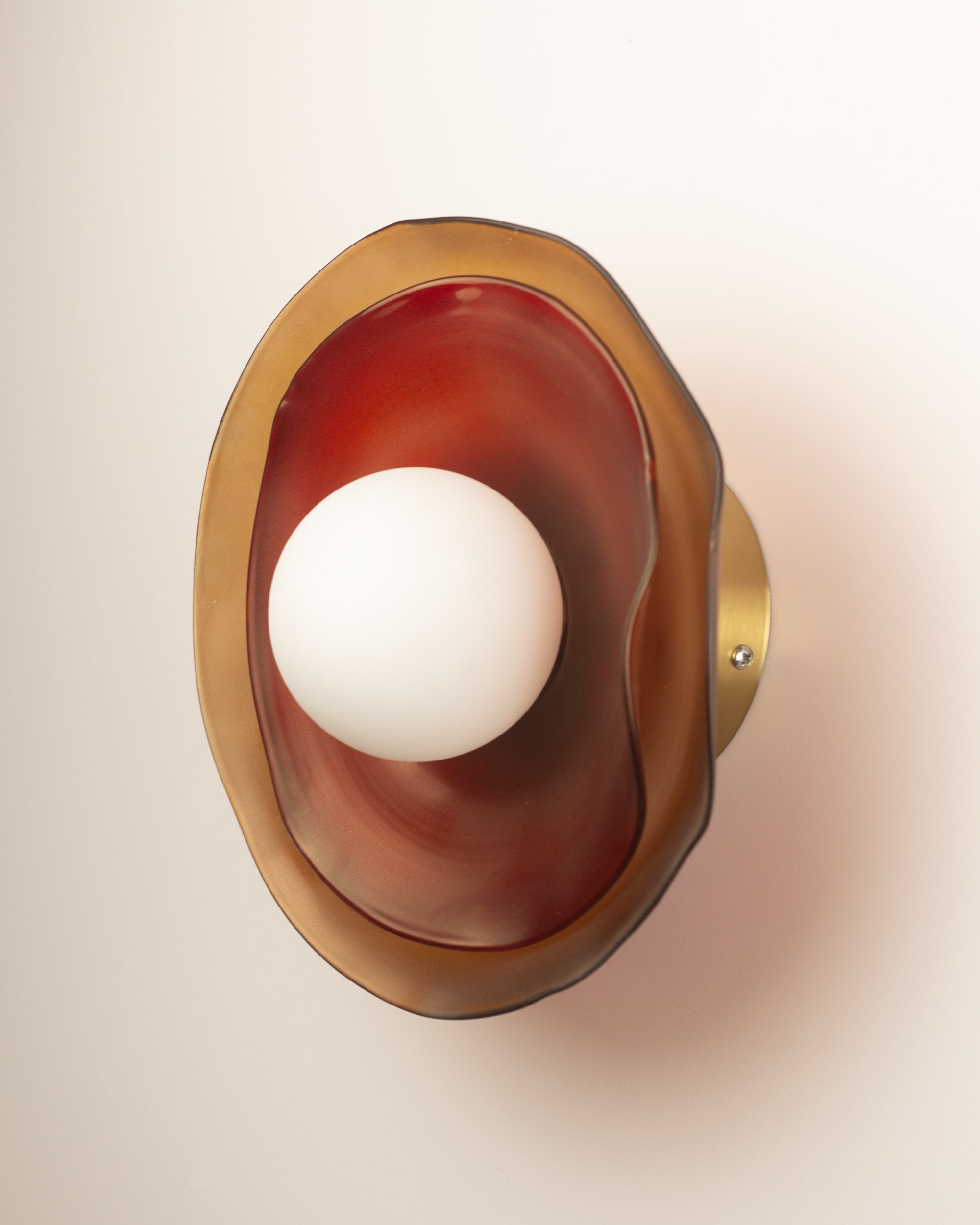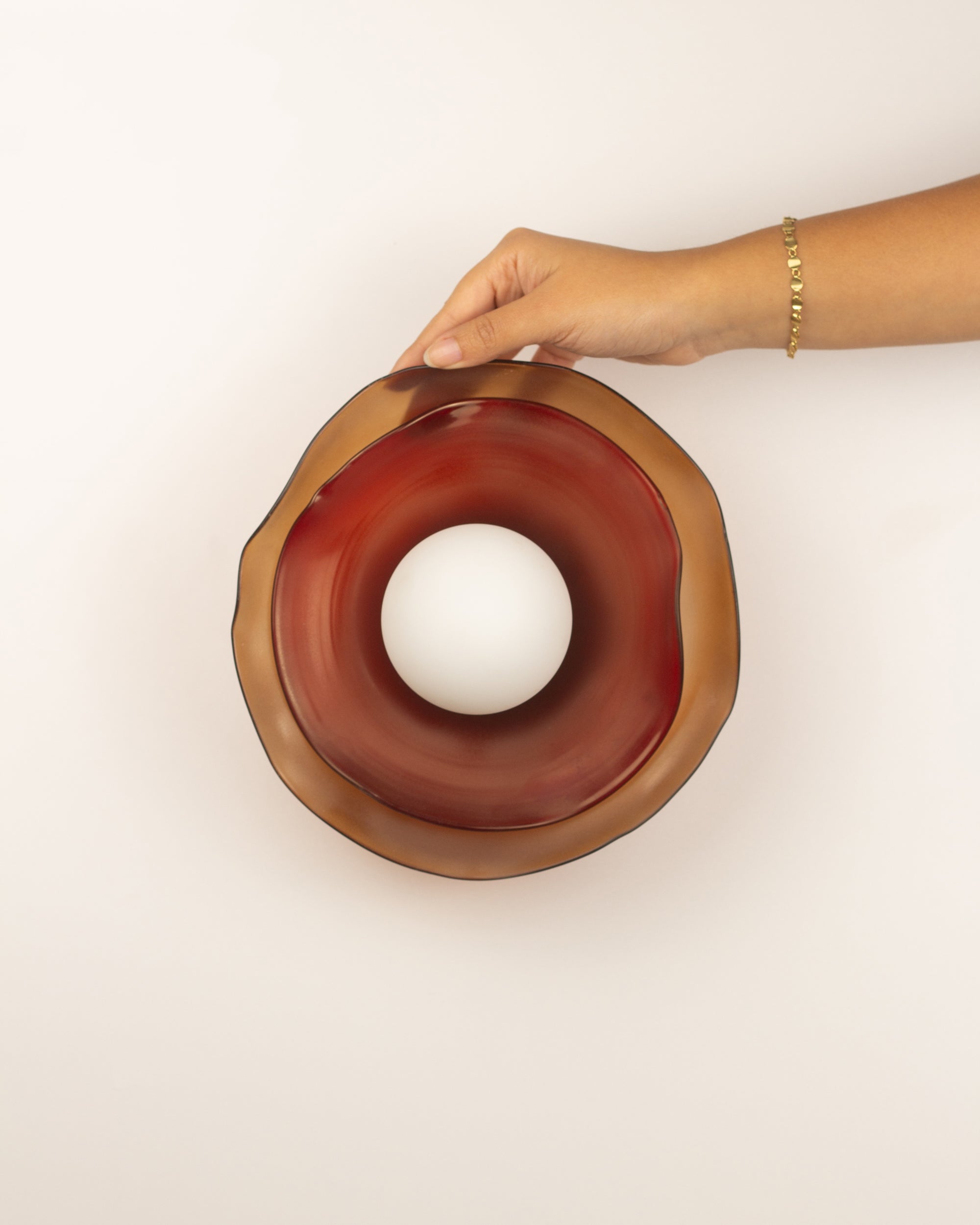Inspired by Cairo’s qahwas, Tamrhendi captures the tangy sweetness of tamarind through overlapping tones of deep brown and red. Like the drink served on hot afternoons and Ramadan nights, this wall lamp glows with a layered vibrancy that feels both refreshing and warm.